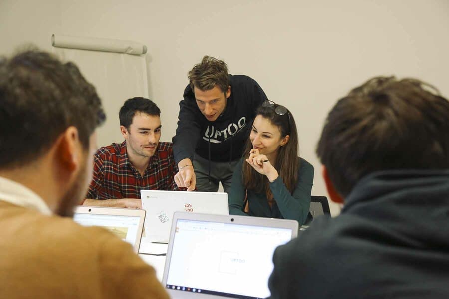 Quand tu intègres Uptoo, tu rentres dans notre cursus académique qui te permettra d’apprendre les ficelles du métier, de grandir afin devenir autonome et réussir. On t'accompagne avec un encadrement renforcé, on t'aide à progresser et à devenir un champion.